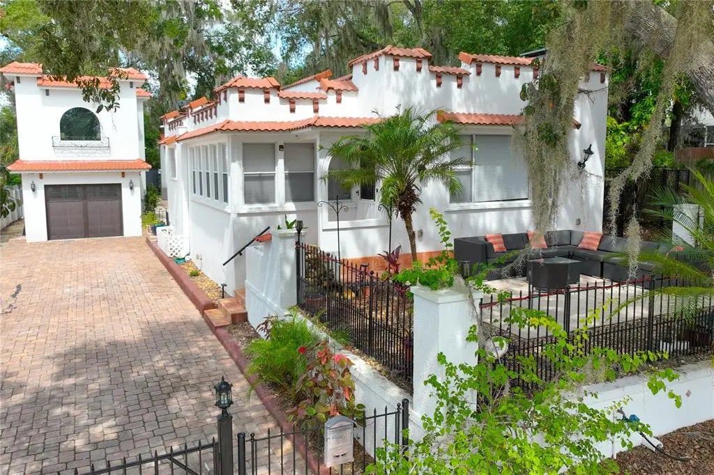 Welcomed to Bellissimo Castello Di Mt Dora. This home was constructed in 1926 and is a registered historic home with the City of Mt Dora. You may see folks stopping by the front of the home and taking pictures as the home is on the tour route for the local guides. Mt Dora is a special place with its many festivals and fairs it is wonderful location in central Florida as a jumping point to the many lakes and springs in the area. This home, with its lovely 200 year old tree out front, is the perfect location to begin your journey. We are located in downtown Mt Dora, just a 1 minute walk to Donnelly Park and stores and shops. Enjoy all that Mt Dora offers in just steps away. There is on-site parking for up to two cars – a must for festivals where there is very limited parking in town. This home features two bedrooms and one bath with one king size and one queen size bed where two couples can sleep comfortably. The kitchen and bath were updated in 2017 with all the modern comforts. Custom wood work and furniture and high-end finishes add to the charm of this home. Outside, there is a large lanai in the front of the house and a stone patio in the back The patio offers a covered pergola with a table and chairs enough to seat 8 individuals. In addition, there is a custom build gas fire-pit area with comfortable furniture available for guests. Laundry facilities are located on property. Cleaning 125$ Video security used outside home. Please inquire directly for possible availability of a third bedroom with queen bed and bath when necessary and available to accommodate larger groups. Additional rent for cabana rental; holiday/event elevated rent prices.